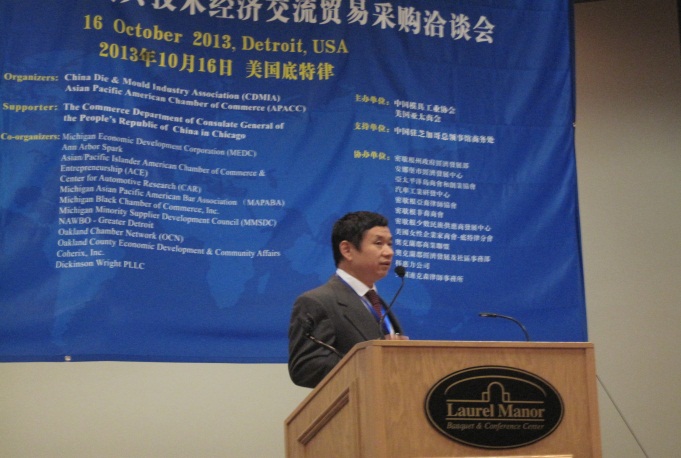 由中國模具工業(yè)協(xié)會、美國亞太商會共同主辦的“2013中美汽車模具技術經(jīng)濟貿(mào)易采購洽談會(2013US-China Automotive Die and Molding Industry Technology & Trade Conference)”于2013年10月15--17日在美國底特律成功舉辦。本次活動得到中國駐芝加哥總領事館商務處(支持單位)和美國密歇根州政府經(jīng)濟發(fā)展署、安娜堡巿經(jīng)濟發(fā)展中心、亞太平洋島商會和創(chuàng)業(yè)協(xié)會、美國汽車工業(yè)研發(fā)中心、美國科惠力公司、美國迪克森律師事務所、 美國密歇根亞裔律師協(xié)會、美國密歇根非裔商會、美國密歇根少數(shù)民族供應商發(fā)展中心、美國女性企業(yè)家商會-疷特律分會、 美國奧克蘭郡商業(yè)聯(lián)盟、美國奧克蘭郡經(jīng)濟發(fā)展及社區(qū)事務部(協(xié)辦單位)的大力支持。