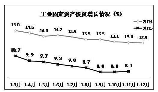 2015年1-11月工業投資增速逐步企穩