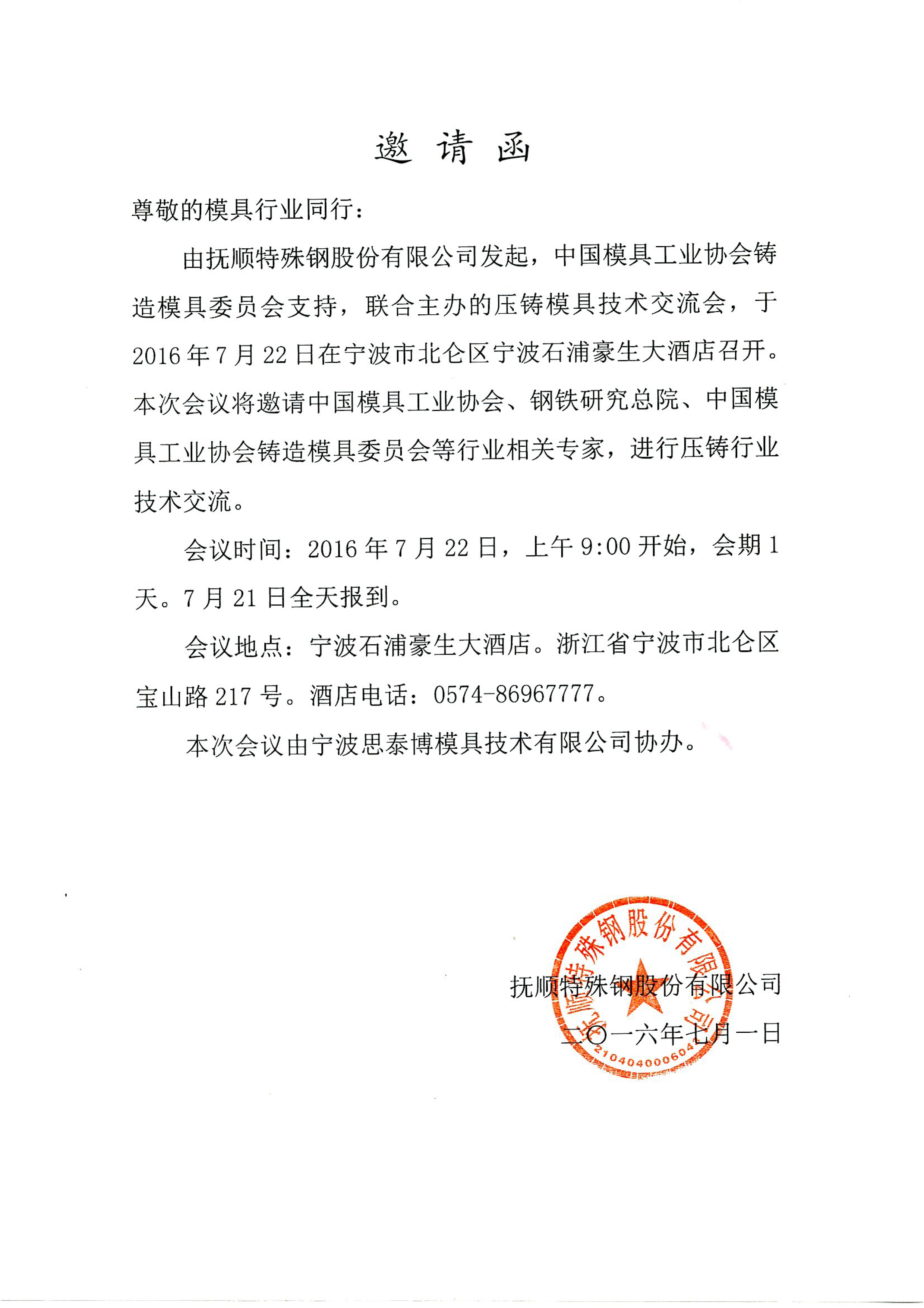 壓鑄模具技術(shù)交流會邀請函