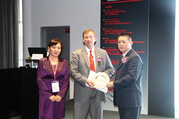 美國塑料工業(yè)協(xié)會國際貿(mào)易副會長Mr.Michael Taylor演講后授紀(jì)念牌