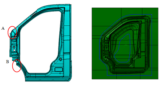 圖1 某側圍外板零件圖 圖2 落料形狀