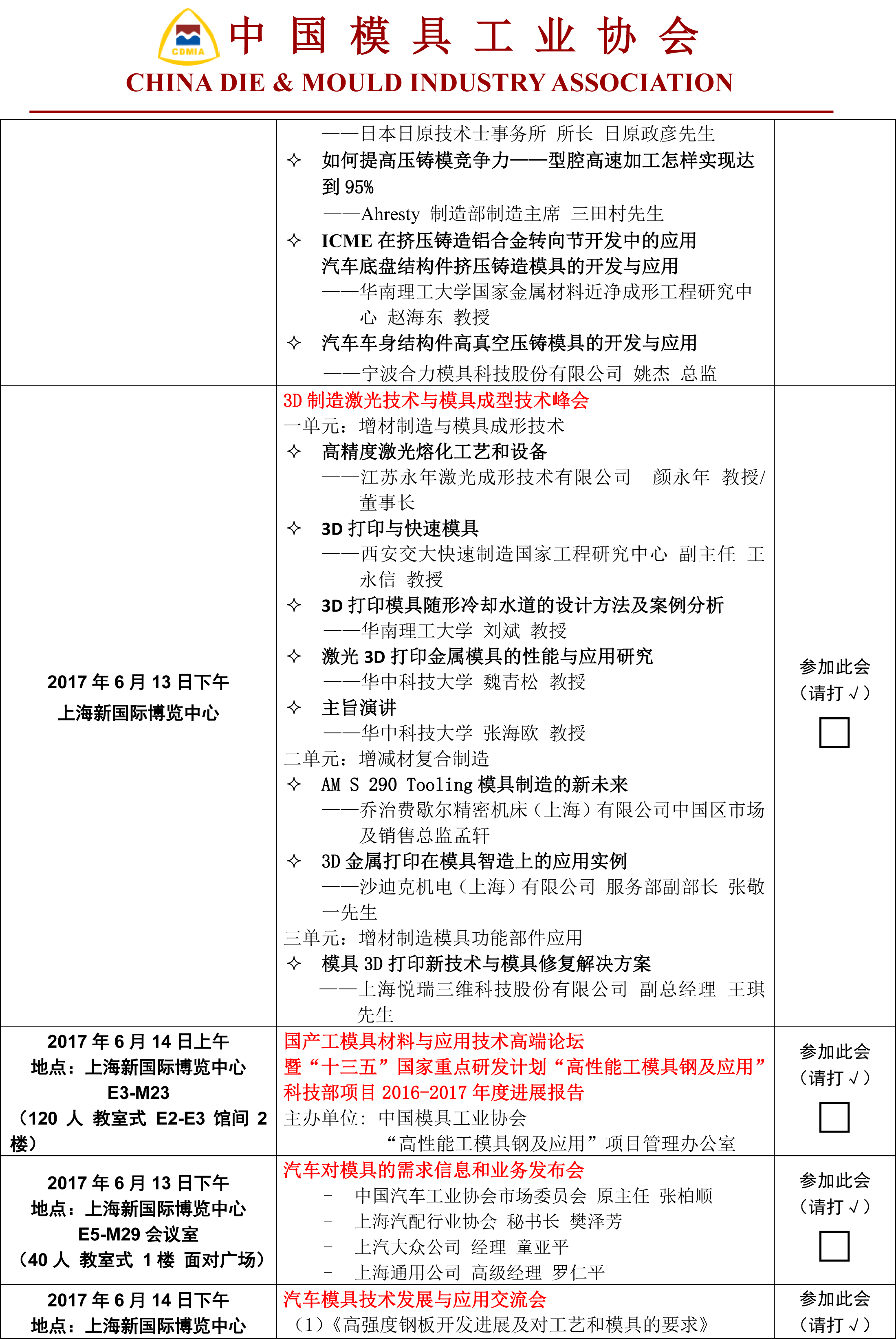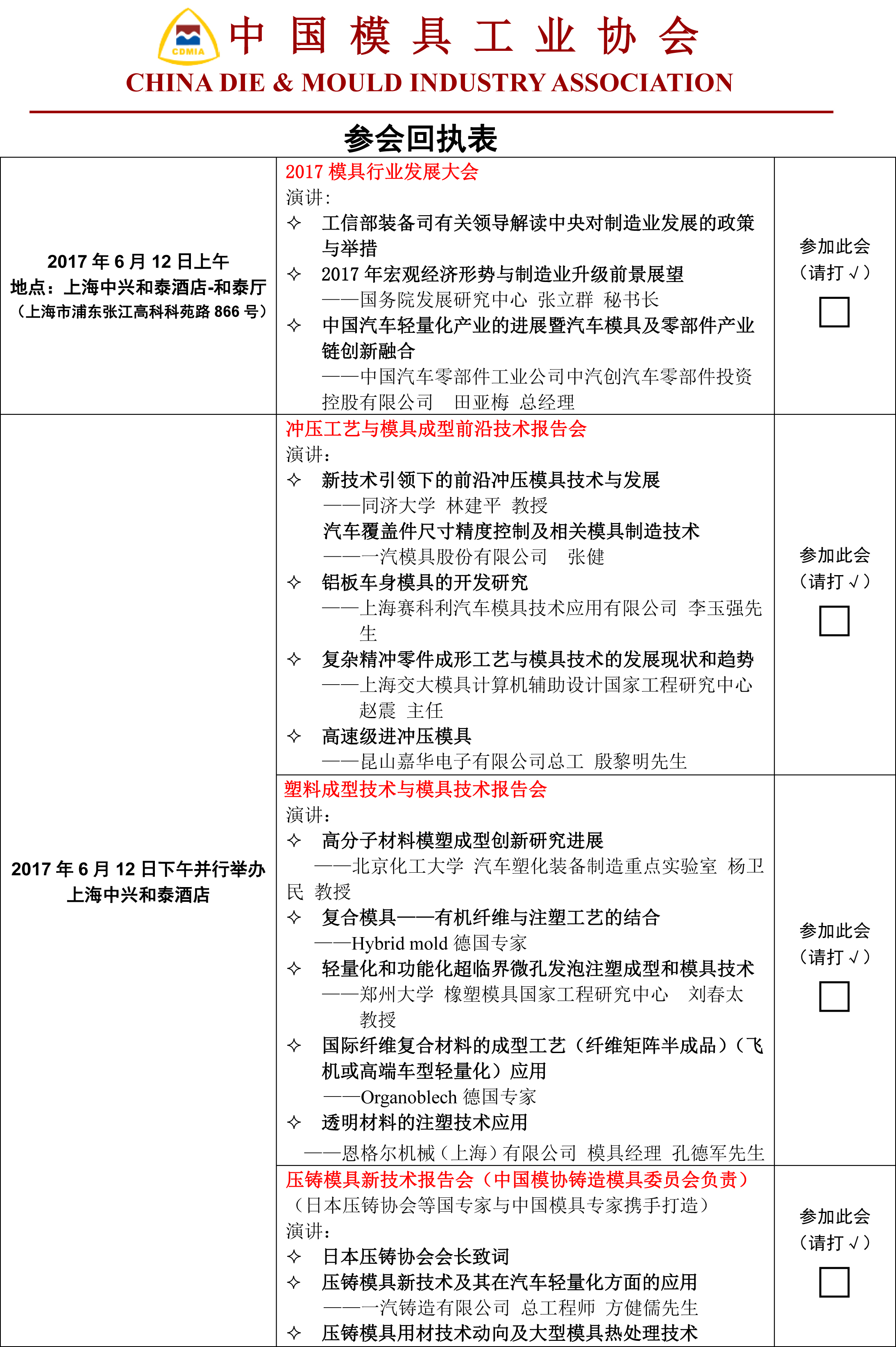 DMC2017同期活動參會回執表