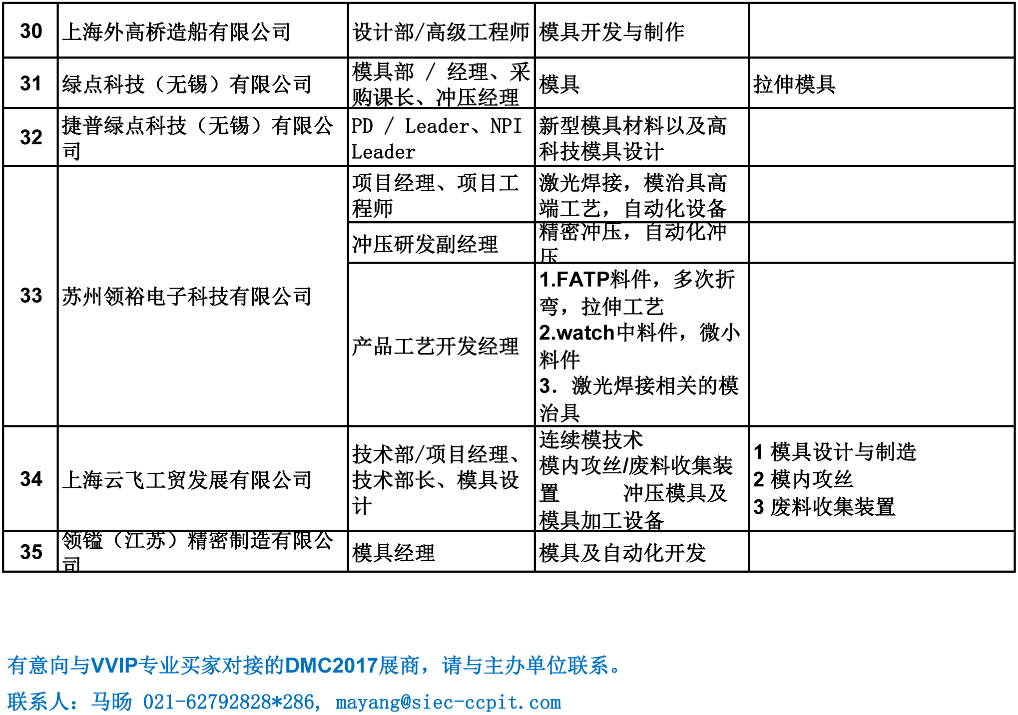 DMC2017 VVIP專業(yè)采購意向表(綜合行業(yè))
