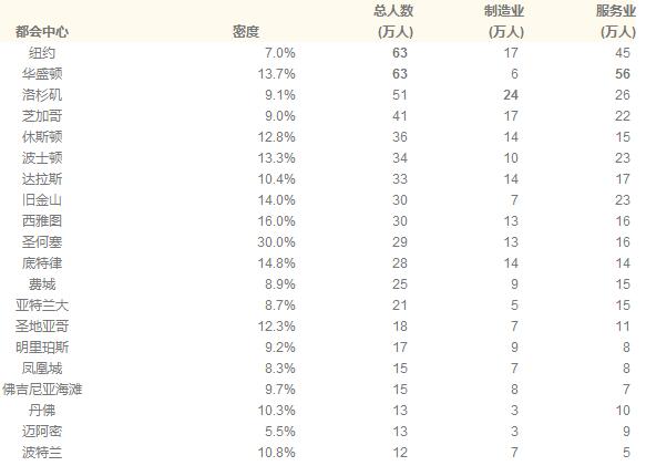 下面是先進產業在各個都會區的情況:密度是指先進產業的工作人數占當地總工作人數的比例,總人數是指先進產業的從業總人數,制造業是指制造先進產業的從業人數,服務業是指服務先進產業的從業人數。