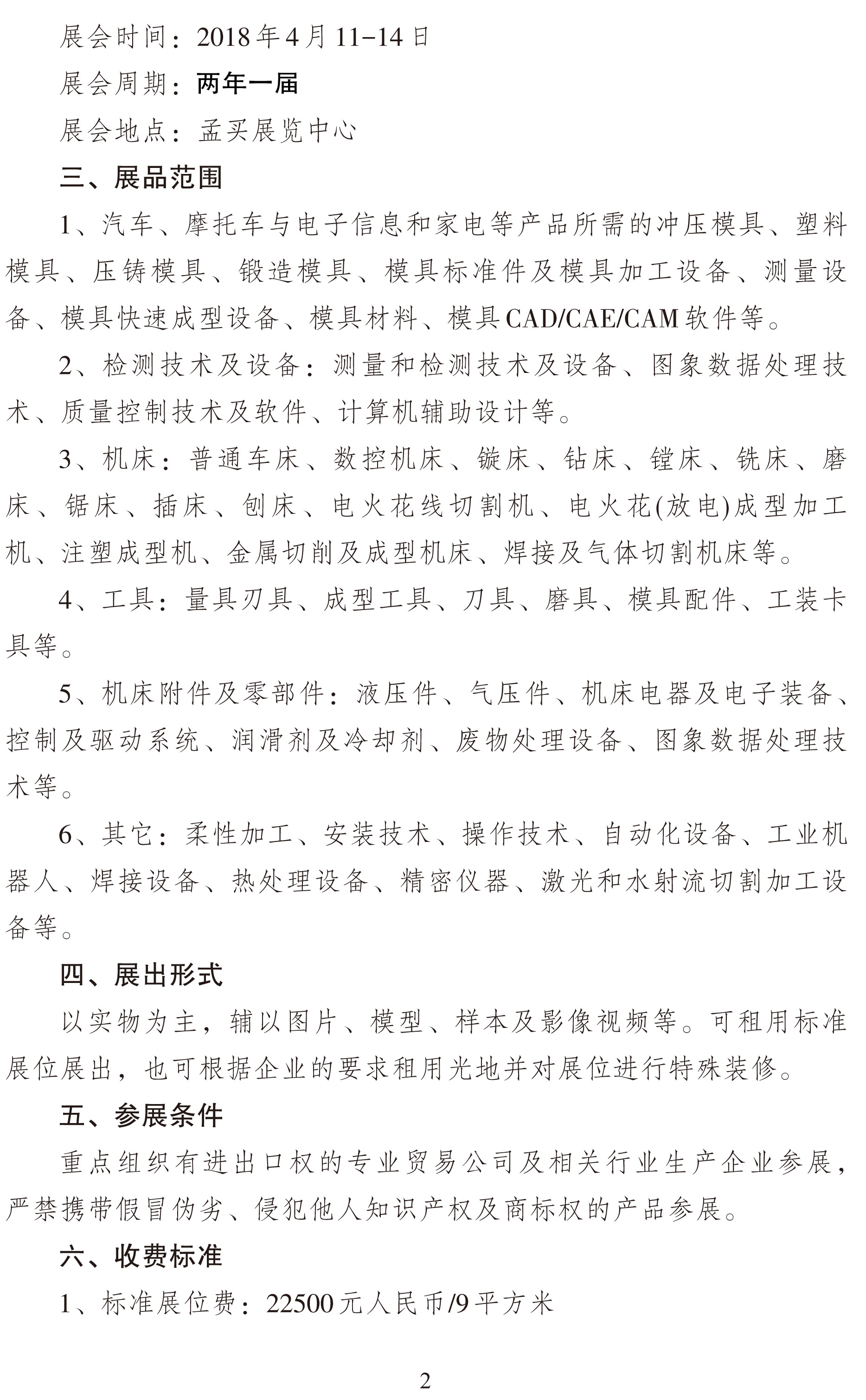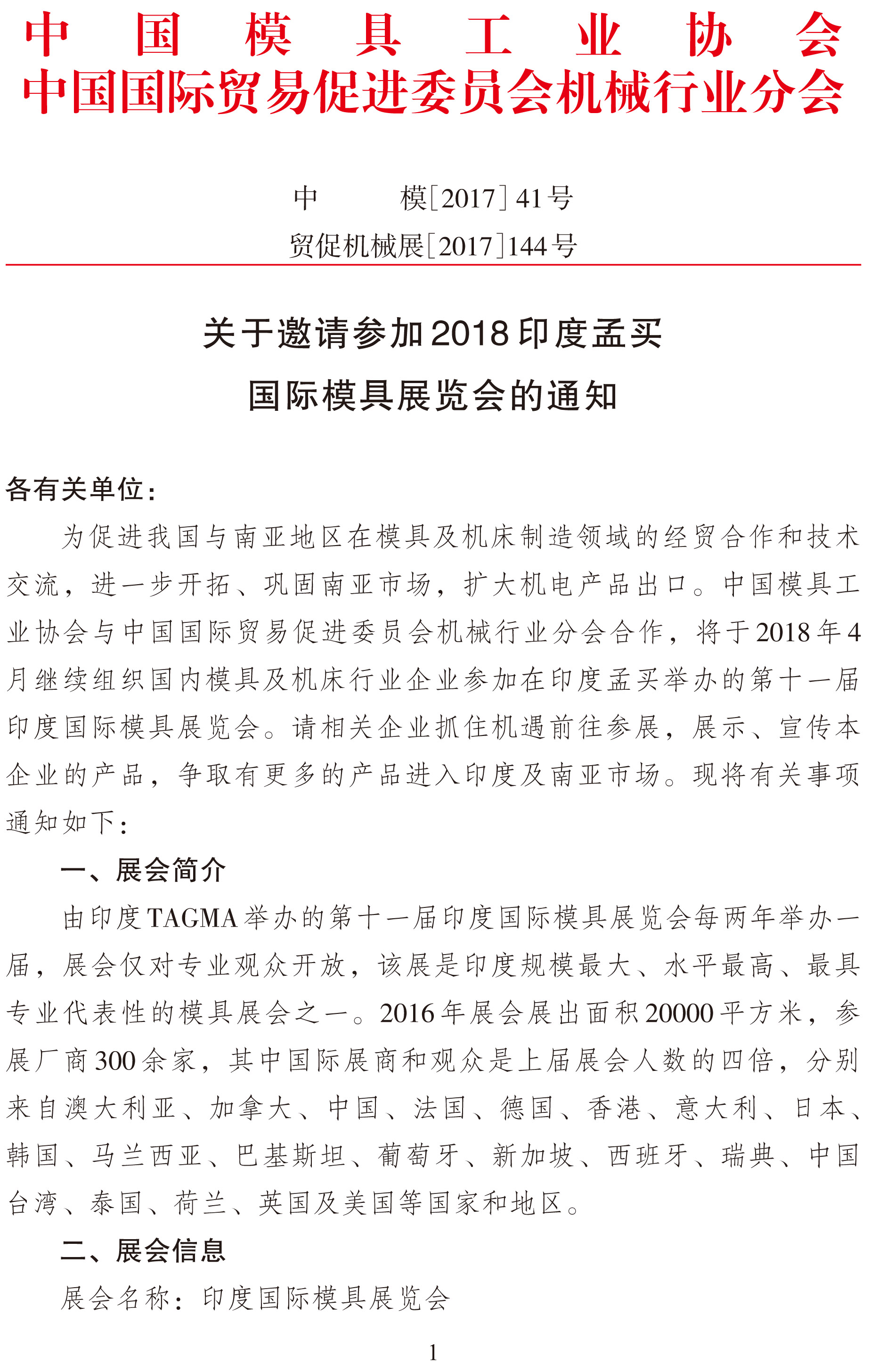 關(guān)于邀請參加2018印度孟買國際模具展覽會的通知