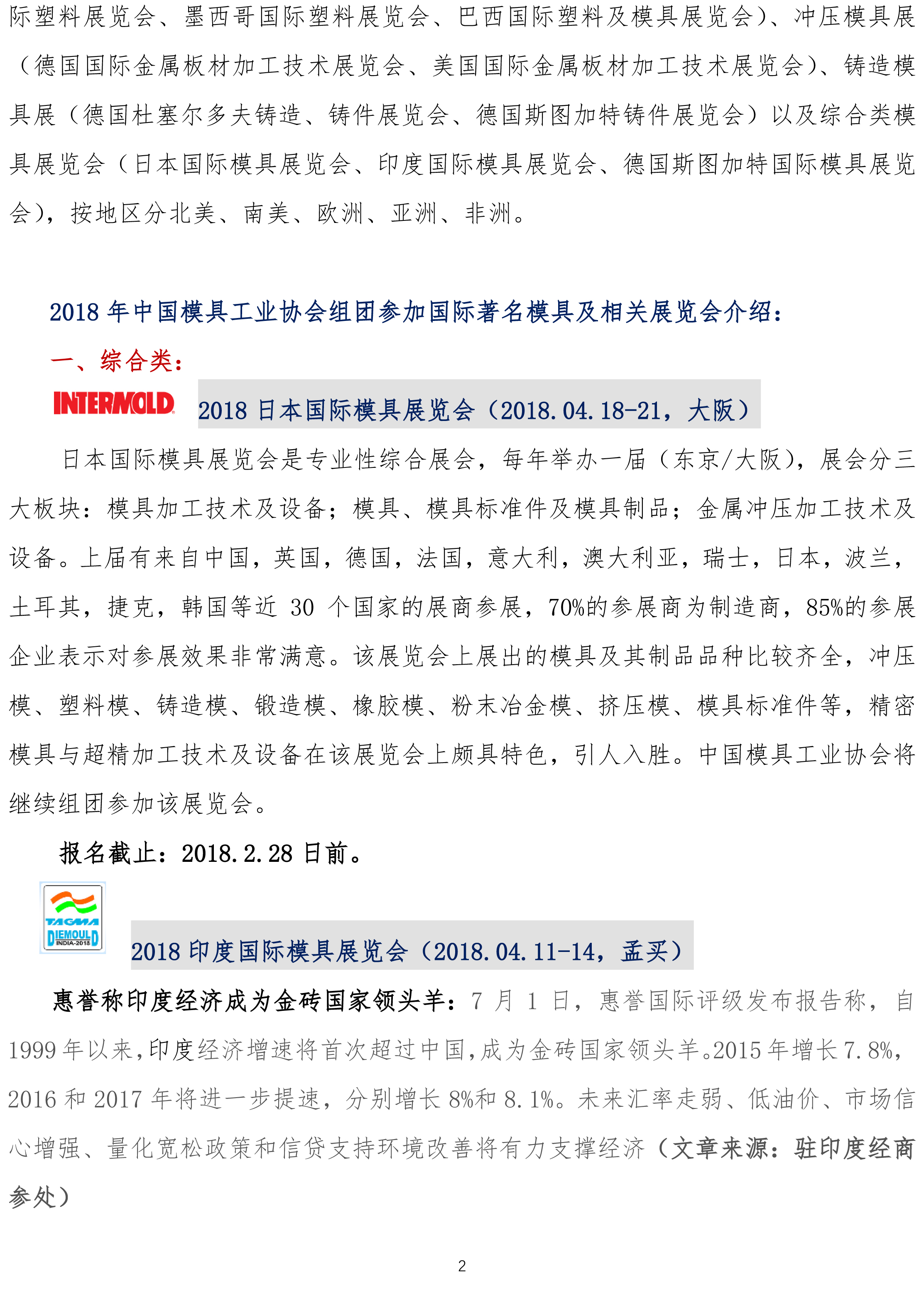 2018年中國模具工業(yè)協(xié)會組團參加國際著名模具及相關(guān)展覽會介紹