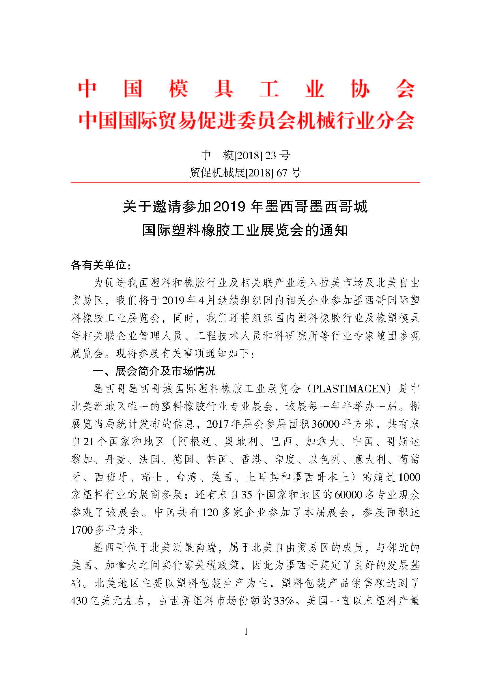 關(guān)于邀請參加2019 年墨西哥墨西哥城國際塑料橡膠工業(yè)展覽會的通知