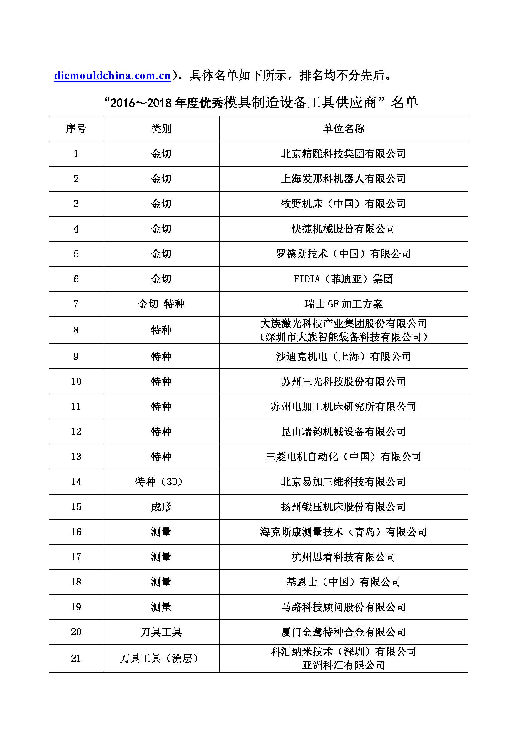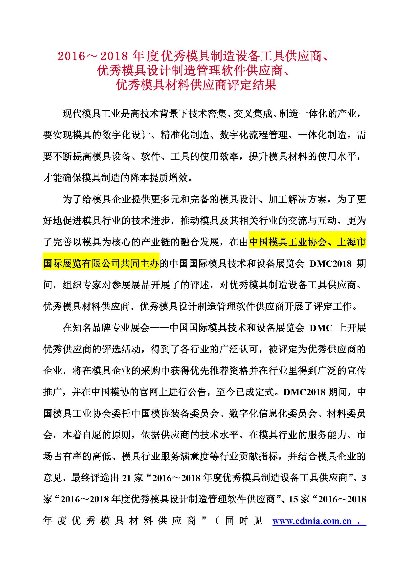 2016~2018年度優秀模具制造設備工具供應商、 優秀模具設計制造管理軟件供應商、 優秀模具材料供應商評定結果