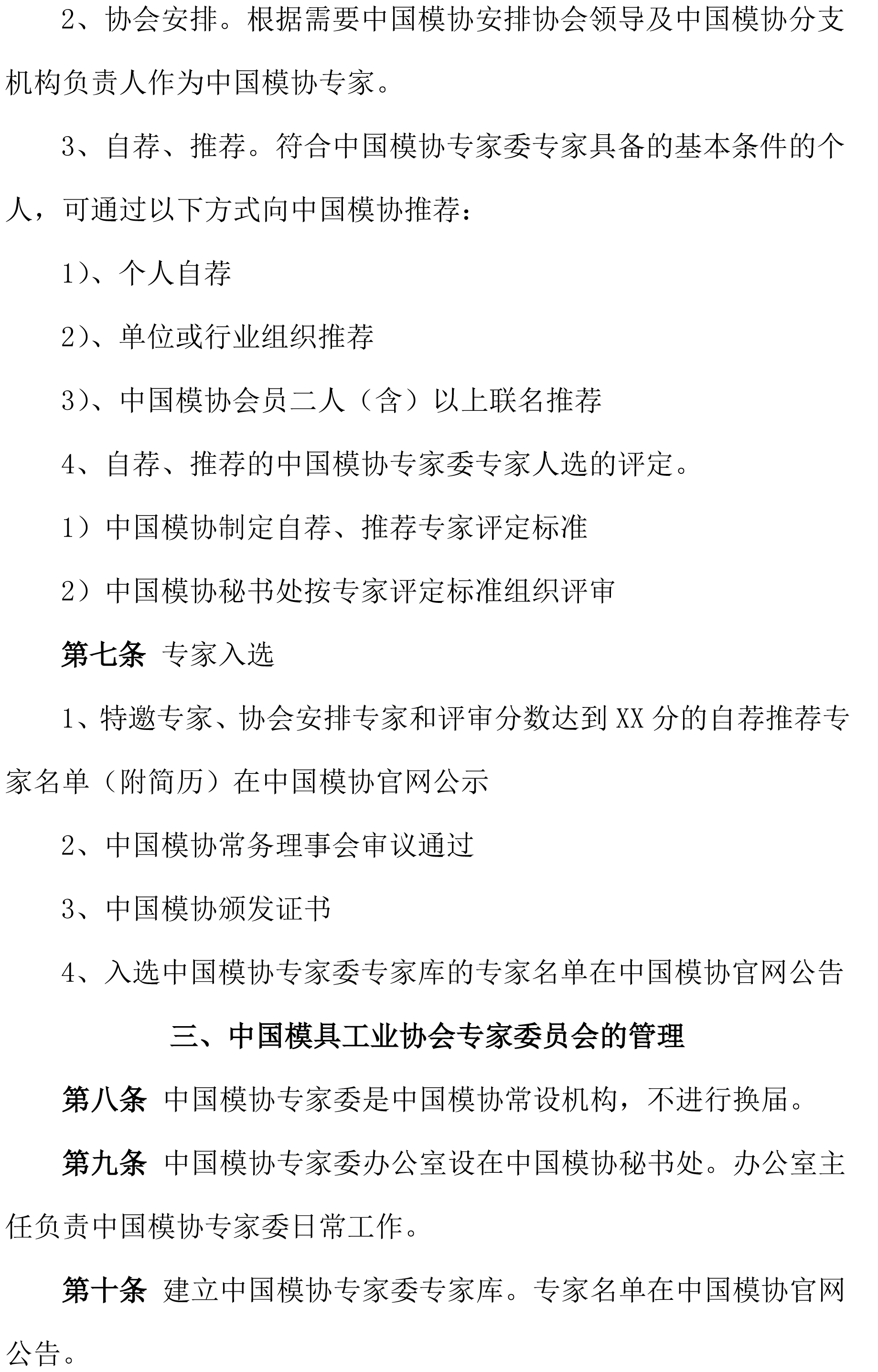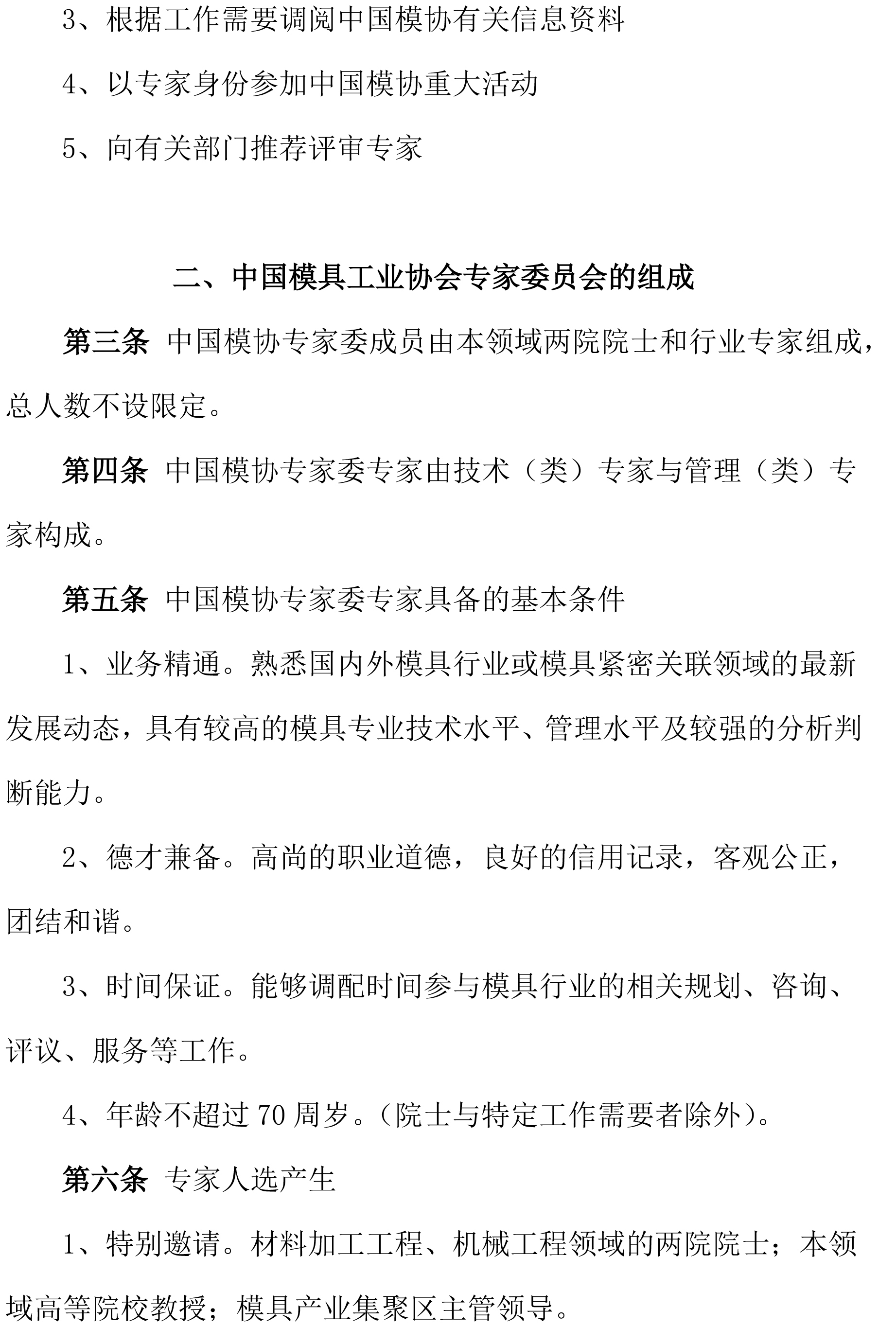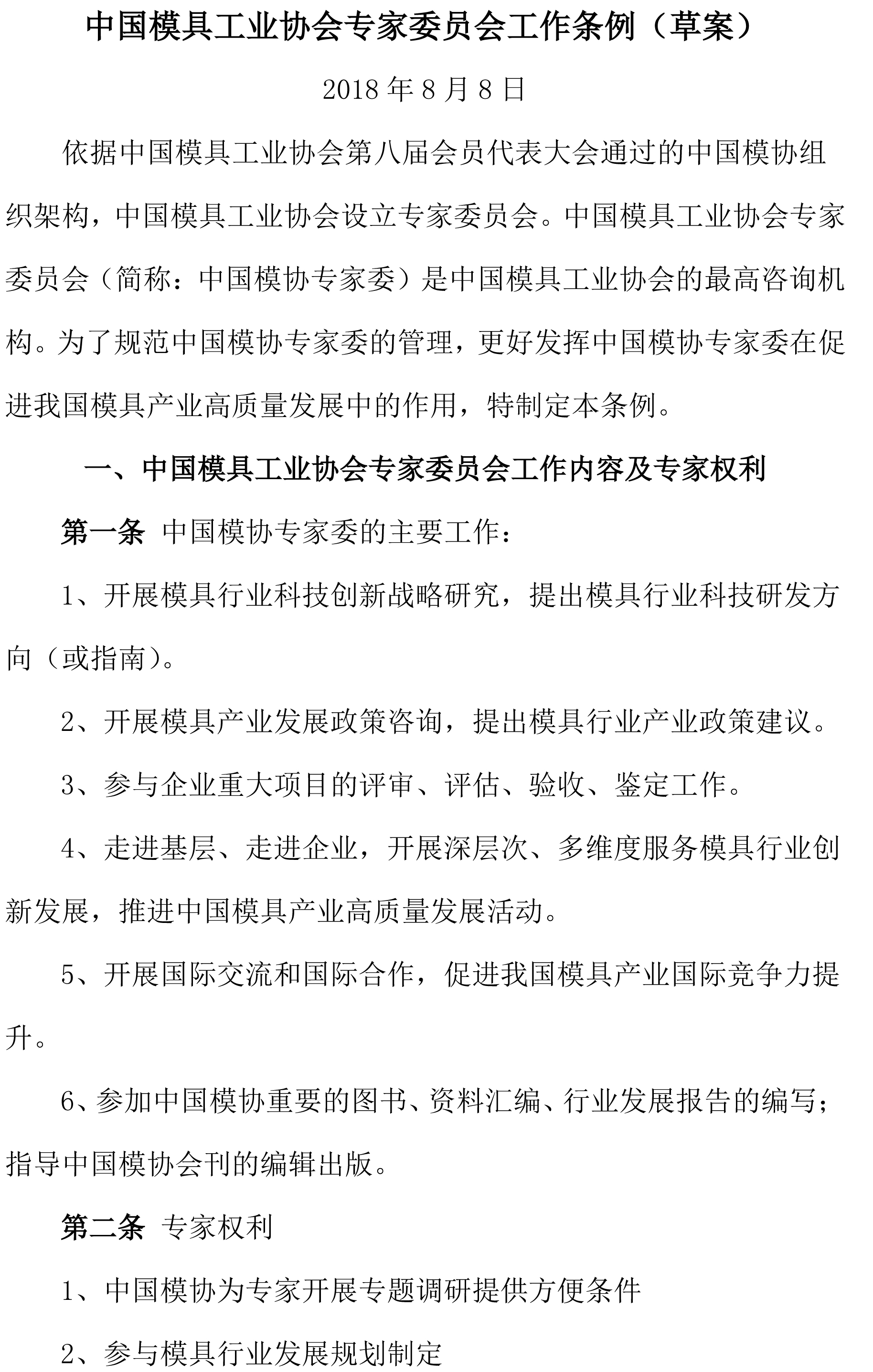 中國模具工業(yè)協(xié)會專家委員會工作條例(草案)