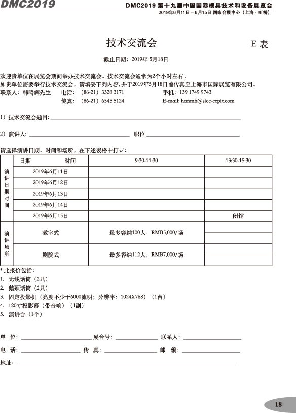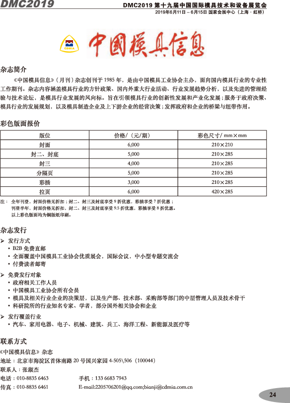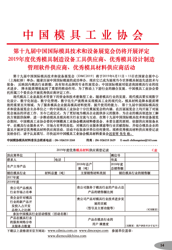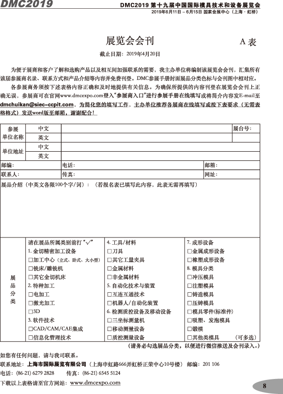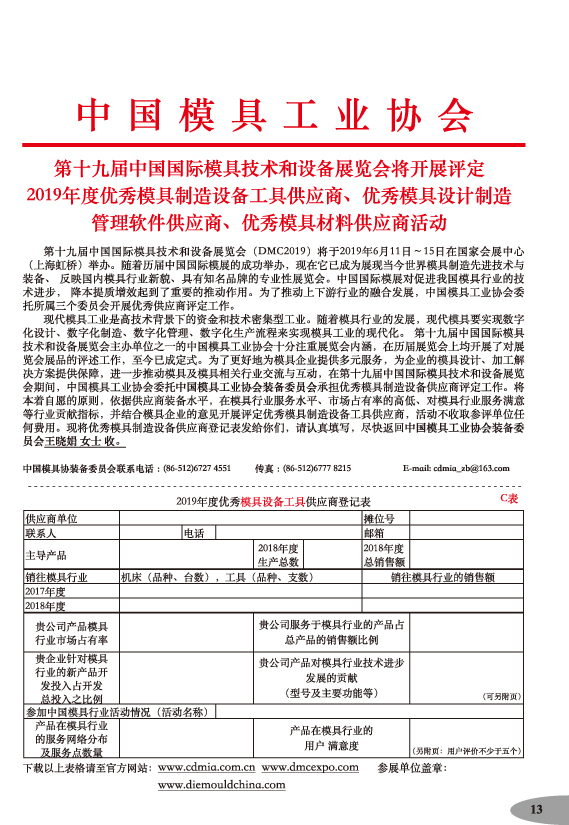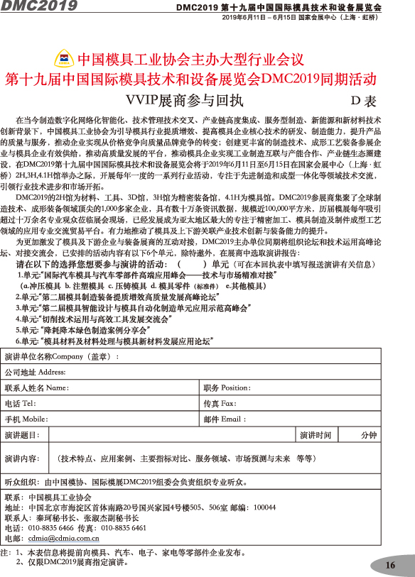 第十九屆中國國際模具技術和設備展覽會參展手冊