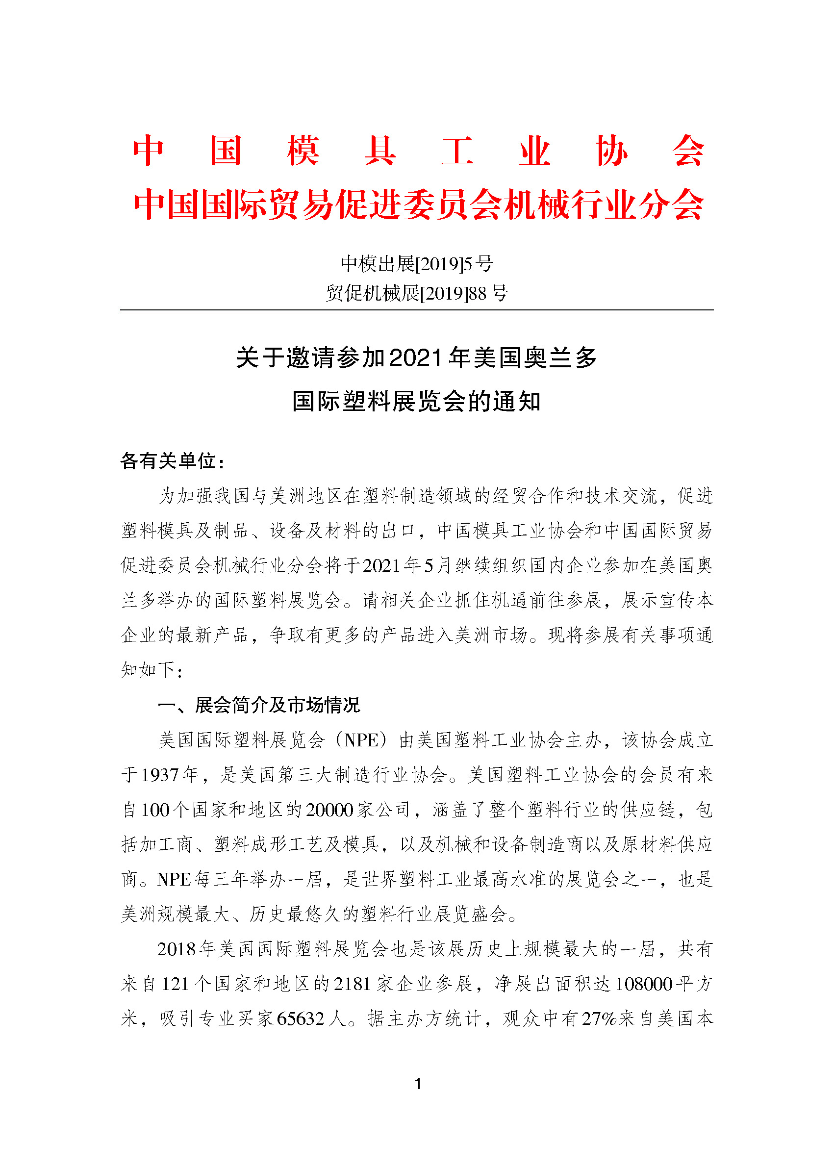 關(guān)于邀請參加2021年美國奧蘭多國際塑料展覽會的通知