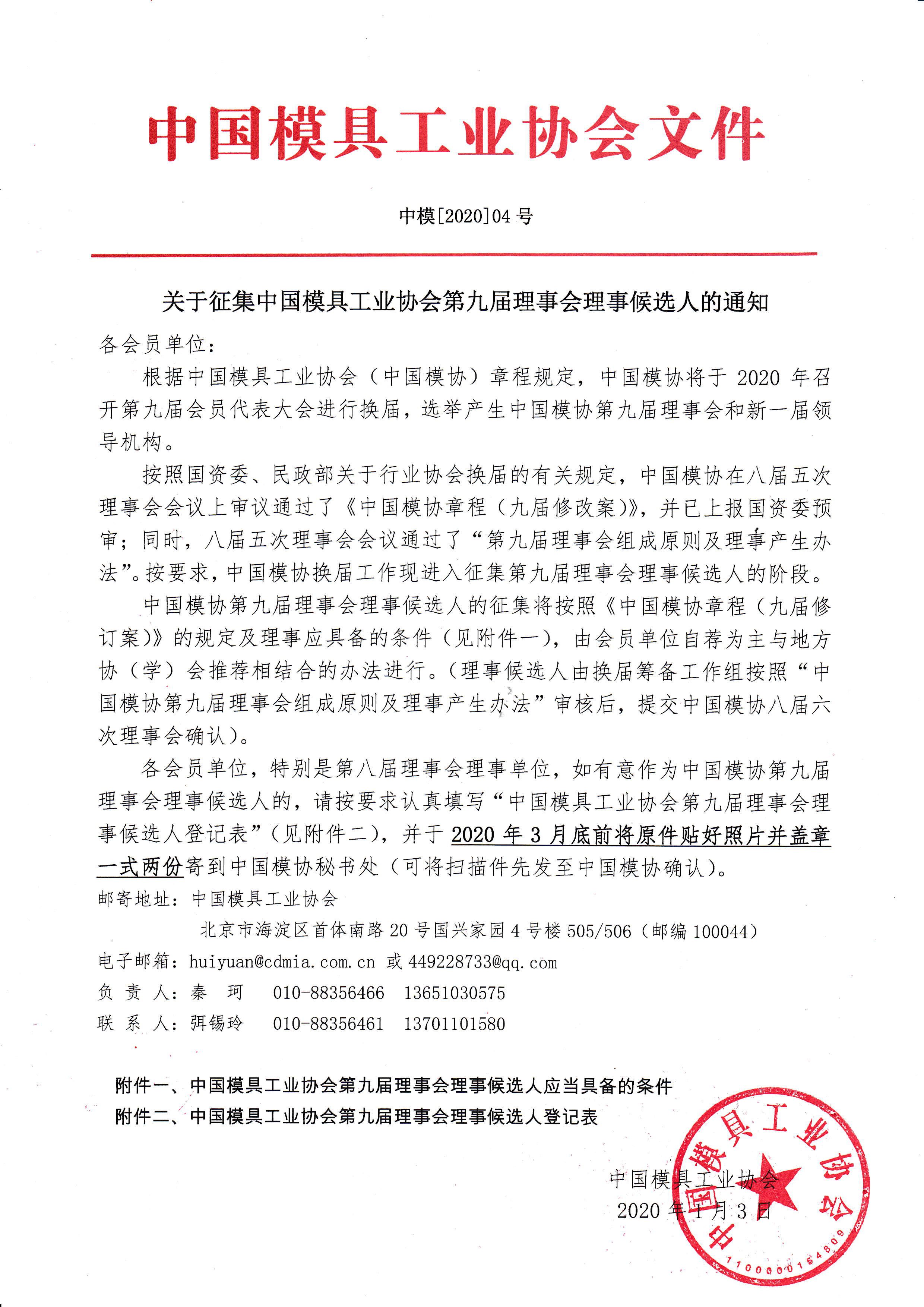 關于征集中國模具工業協會第九屆理事會理事候選人的通知