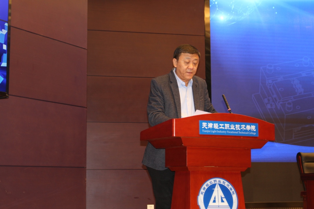 中國模具工業(yè)協(xié)會職業(yè)教育委員會主任、天津輕工職業(yè)技術(shù)學(xué)院黨委書記戴裕崴致辭并就學(xué)院辦學(xué)特色、校企合作及魯班工坊的建設(shè)等方面進行了介紹,表示天津輕工職業(yè)技術(shù)學(xué)院將熱心、精心、細心、虛心的完成技能大賽的各項承辦工作,做到公開、公正、公平,并預(yù)祝大賽取得圓滿成功。