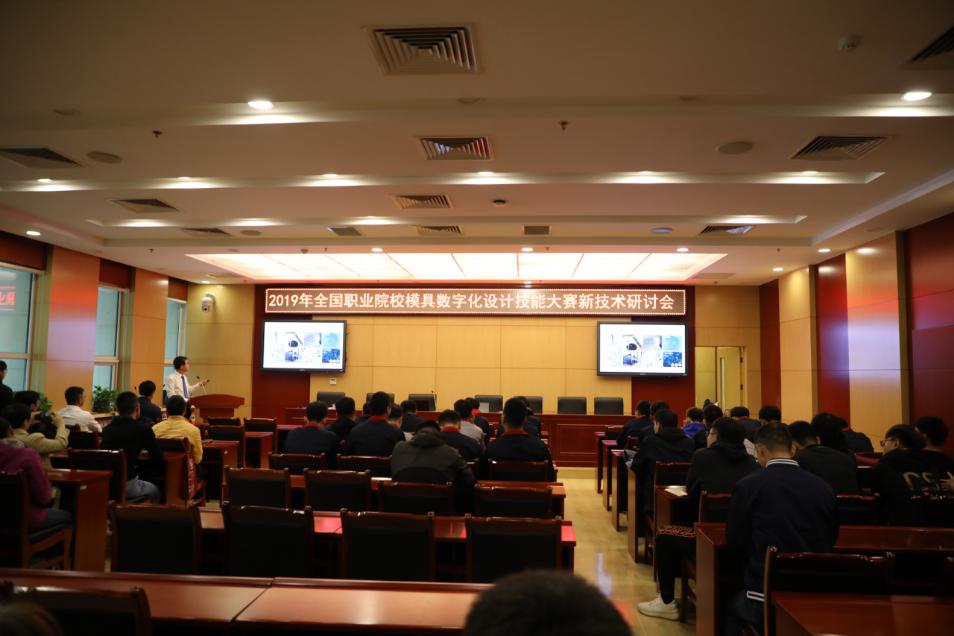 在比賽的同時,各學(xué)校領(lǐng)隊及指導(dǎo)教師參加了2019年全國職業(yè)院校模具數(shù)字化設(shè)計技能大賽新技術(shù)研討會。在會上,GF加工方案華北區(qū)銷售總監(jiān)白相忠以“新技術(shù),新機遇”為主題,北京精雕科技集團有限公司CAD/CAM項目負責(zé)人王帥以“‘智’造下的CN程序”為主題分別向參會人員做了講座。