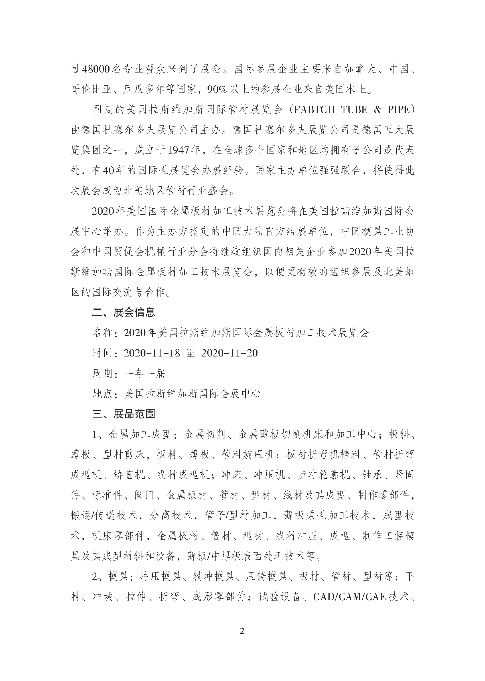 關(guān)于邀請參加2020年美國拉斯維加斯國際金屬板材加工技術(shù)展覽會(huì)的通知