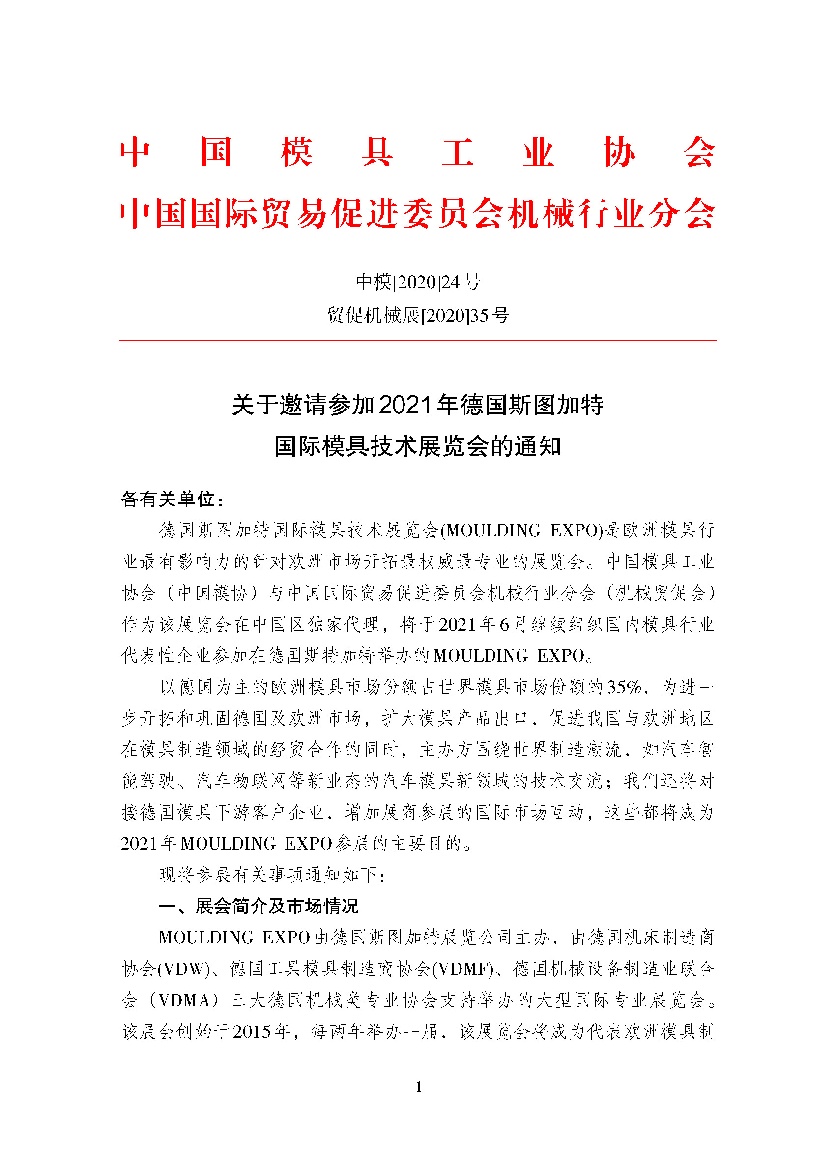 關(guān)于邀請參加2021年德國斯圖加特國際模具技術(shù)展覽會的通知