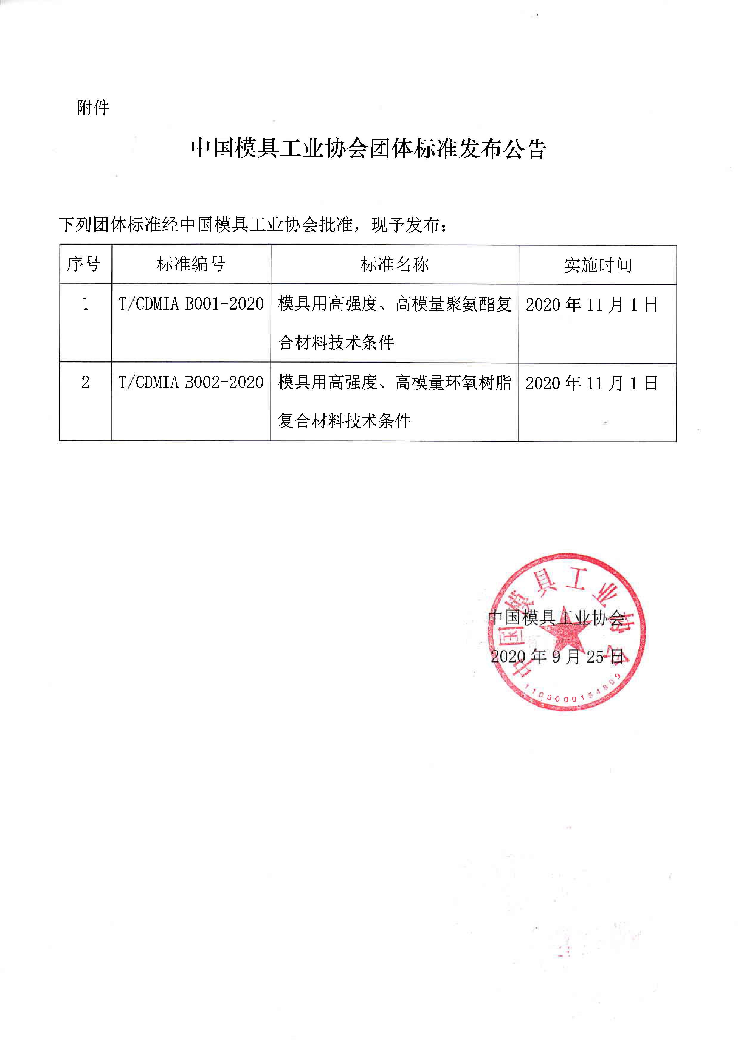 關于發布《模具用高強度、高模量聚氨酯復合材料技術條件》等兩項團體標準公告的通知