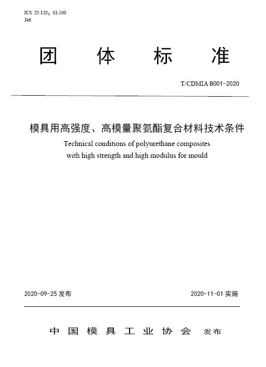 中國模協標準B001-模具用高強度、高模量聚氨酯復合材料技術條件-2020