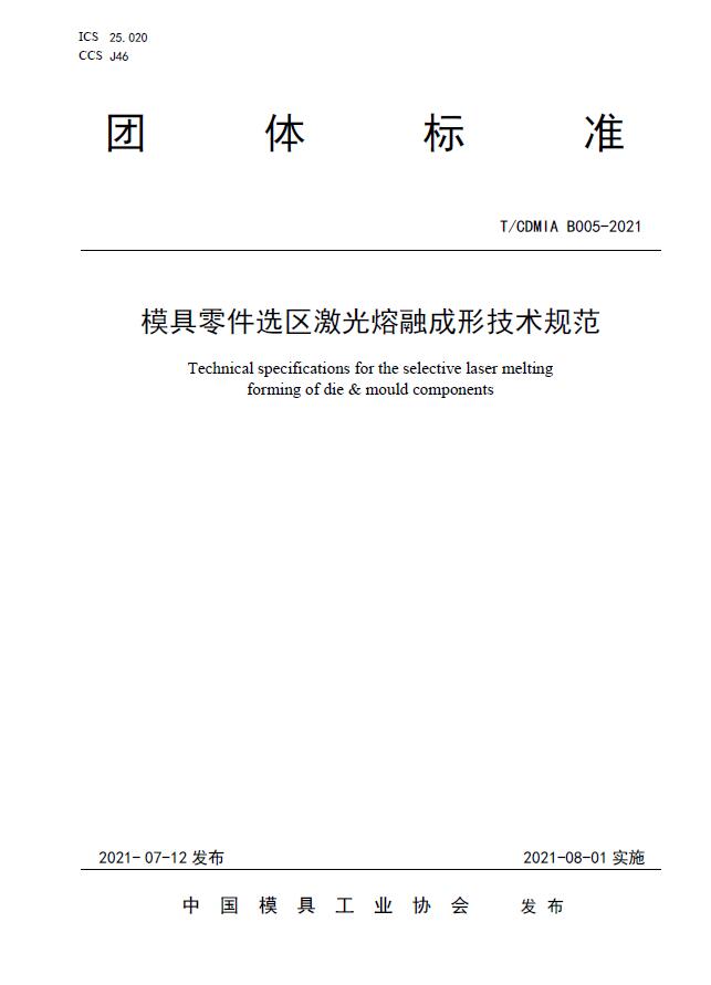 中國模協(xié)標(biāo)準(zhǔn)T/CDMIA B005-2021模具零件選區(qū)激光熔融成形技術(shù)規(guī)范