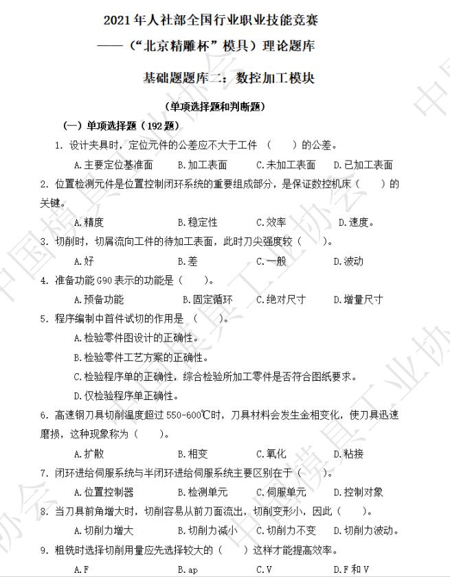 ——(“北京精雕杯”模具)理論題庫