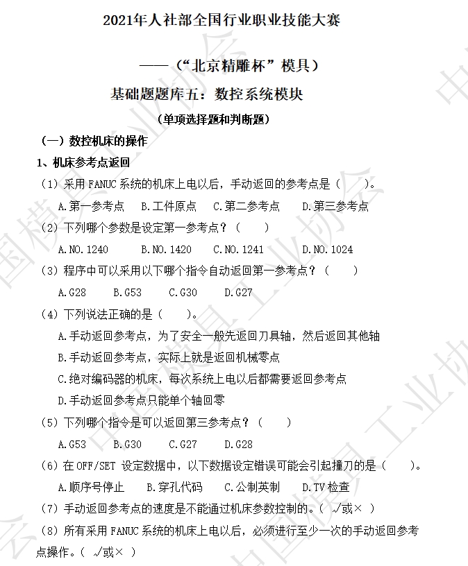 基礎題題庫:數控加工模塊、數控系統模塊