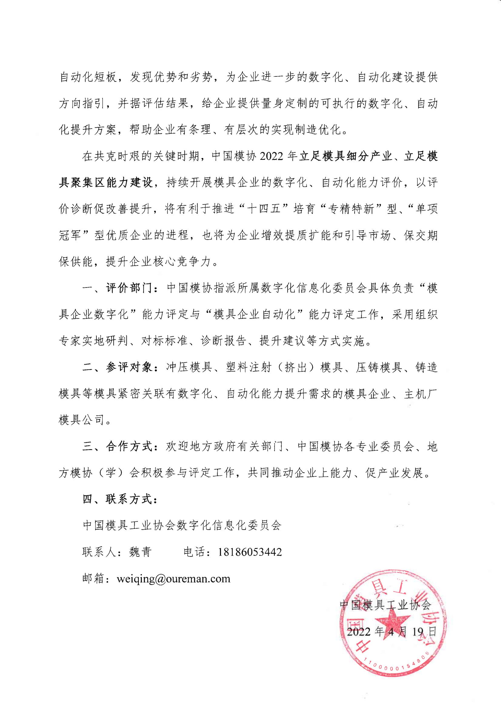 “模具企業數字化”能力評定與“模具企業自動化”能力評定邀請函