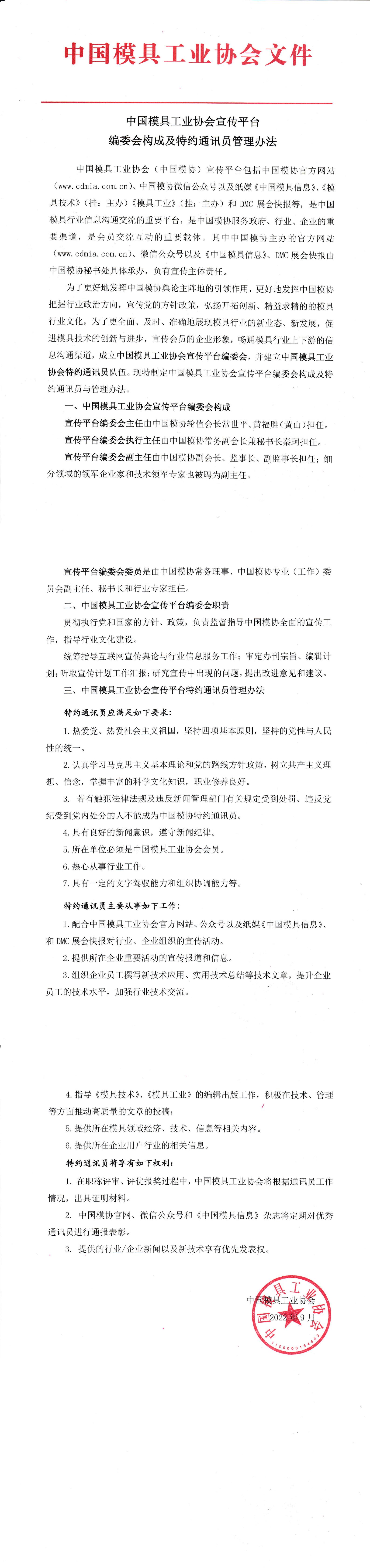中國模具工業協會宣傳平臺編委會構成及特約通訊員管理辦法