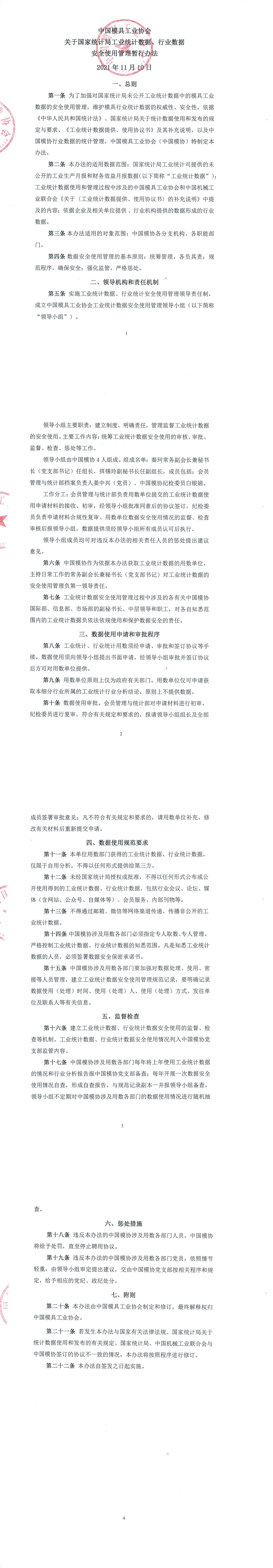 中國模具工業協會關于國家統計局工業統計數據、行業數據安全使用管理暫行辦法