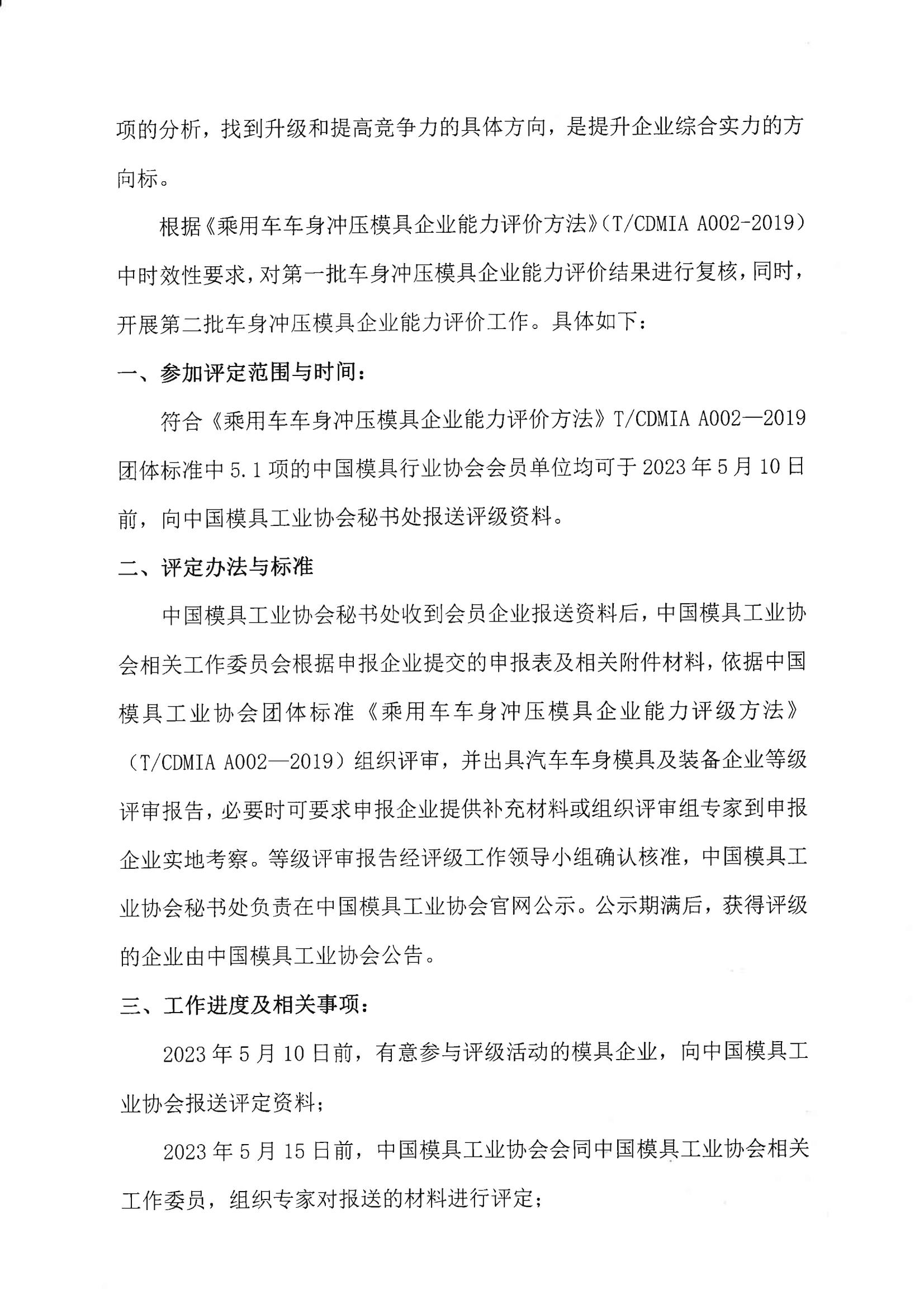 關(guān)于開展第二批車身模具企業(yè)評級工作的通知