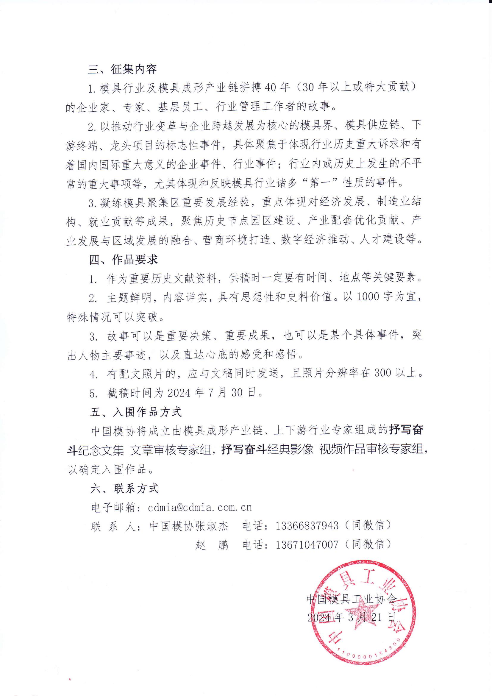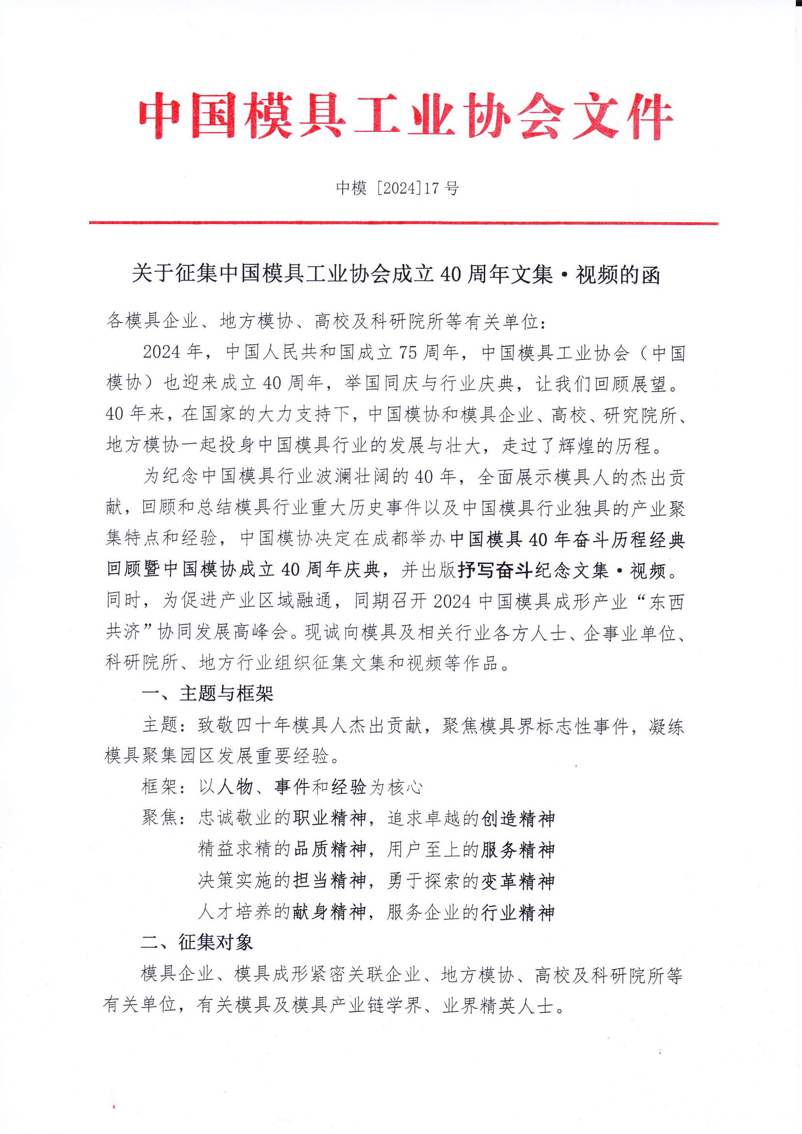 關于征集中國模具工業協會成立40周年文集 視頻的函