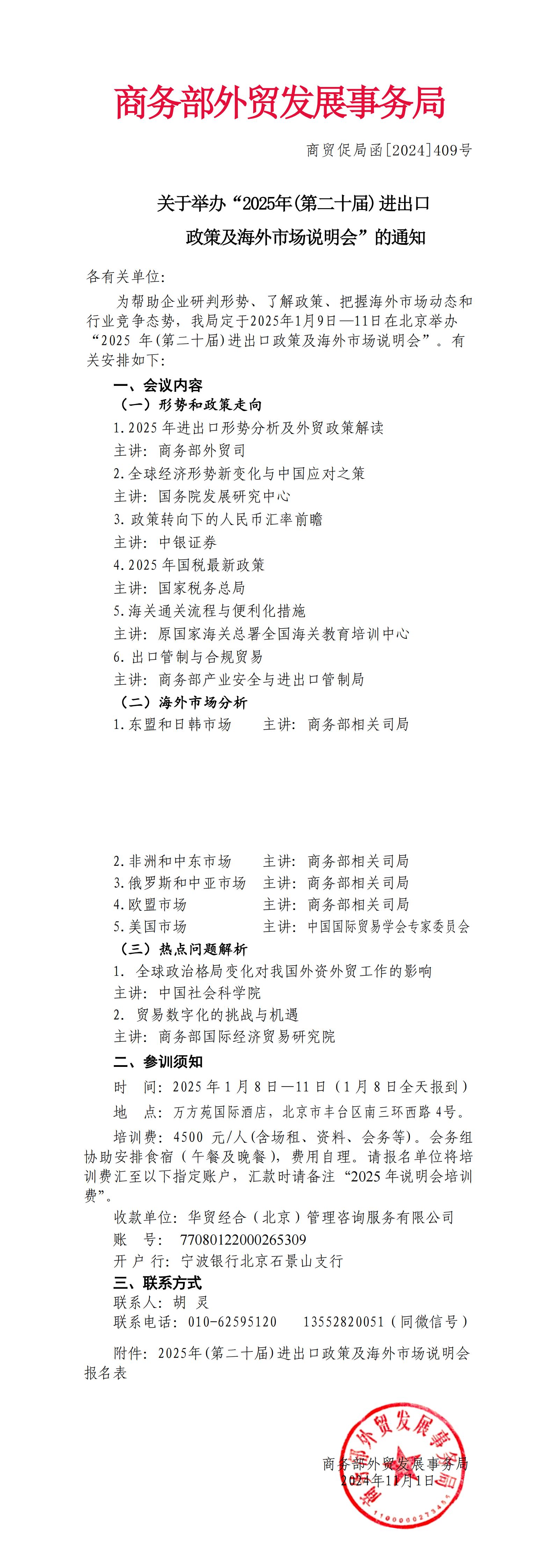 關(guān)于舉辦“2025年(第二十屆)進(jìn)出口政策及海外市場(chǎng)說(shuō)明會(huì)”的通知